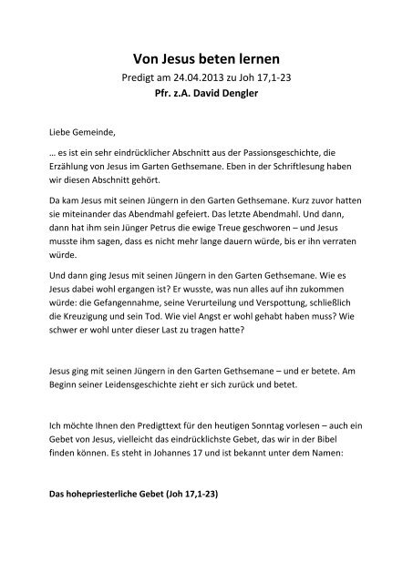 nowakpredigtbuch.de/85.html Wenn dann ein Jünger Jesu im Namen Jesus betet, etwas gebietet, bindet oder löst, hat das die gleiche Wirkung, als wenn Jesus selbst gebetet hätte. Denn hinter dem Gebet des Jüngers steht...