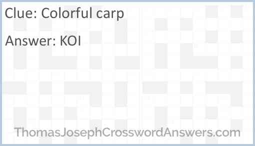 Colorful carp crossword clue - Answers.org Colorful carp crossword clue. Written by bible September 6, 2021. Here is the answer for: Colorful carp crossword clue answers, solutions for the popular game Daily Themed Crossword. If you are looking for other crossword clue solutions simply use the search functionality in the sidebar. Please keep in mind that similar clues can have different answers that is why we always recommend to check the number of letters.