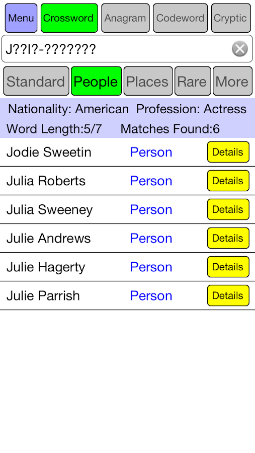 Instant Crossword / Codeword / Hangman Solver Instant Solve can solve your elusive crossword, codeword and hangman clues. If you've got some of the letters, the solver can tell you which words fit. All you have to do is type the letters you've got into the box below. Use a space ( ) underscore (_) or hyphen (-) to represent the missing letters. Use the solver to beat your friends at ... Crossword Solver - Solve Crossword Puzzles Fast - Word Unscrambler Our Crossword Puzzle Solver is simple on purpose, so you can quickly solve tricky crossword puzzle clues and move on. Just enter the clues and an optional pattern, and we will do the rest! We include the answers to clues from all major publications, such as the LA Times, The NY Times, USA Today, The Guardian, Daily Celebrity. Uk Crime Unit Crossword Clue and Solver - Crossword Solver The CroswodSolver.com system found 25 answers for uk crime unit crossword clue. Our system collect crossword clues from most populer crossword, cryptic puzzle, quick/small crossword that found in Daily Mail, Daily Telegraph, Daily Express, Daily Mirror, Herald-Sun, The Courier-Mail, Dominion Post and many others popular newspaper. Crossword Help - Find Missing Letters & Solve Clues A crossword is a word puzzle game that you will find on a rectangular or square grid. On the grid, you'll notice black and white boxes. On your standard crossword puzzle game, you will find mostly white boxes with a few black shaded boxes spread sporadically across the board, but it is really as random as that? Not at all! How to Play the Game