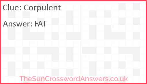 Corpulent Crossword Clue - The Sun Answers Corpulent Crossword Clue Daily Clue 6 August 2022 The Sun Two Speed Here you will find Corpulent crossword answer and crosswords puzzles that get your brain working. We love The Sun Two Speed Crosswords and any other types of clues too, which is why we have created this website with everything from clue solutions and grid locations as well!